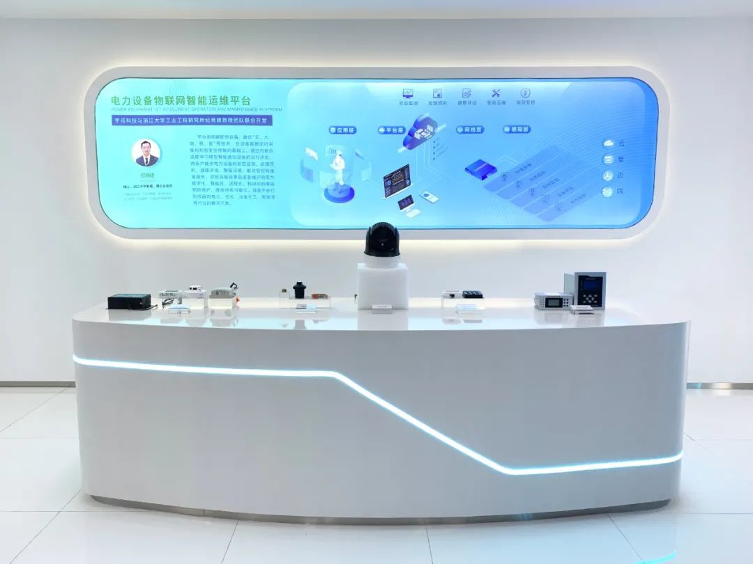 展廳核心區(qū)域展示了宇諾科技與浙江大學(xué)紀(jì)楊建教授團隊聯(lián)合研發(fā)的電力設(shè)備物聯(lián)網(wǎng)智能運維平臺的介紹說明,參觀者可以在展廳大屏上操作演示系統(tǒng),實地感受平臺的核心功能。