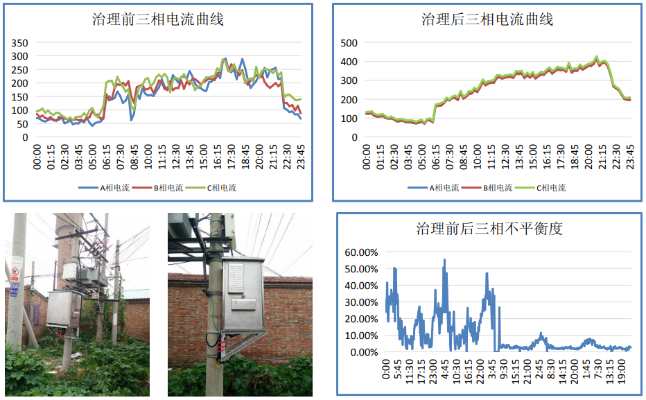 山東濟(jì)南市章丘區(qū)某配電臺區(qū)三相不平衡問題突出,存在末端低電壓問題,人工治理后沒多久又出現(xiàn)不平衡的現(xiàn)象,給運維造成極大的不便,經(jīng)過治理后三相不平衡問題得到解決。