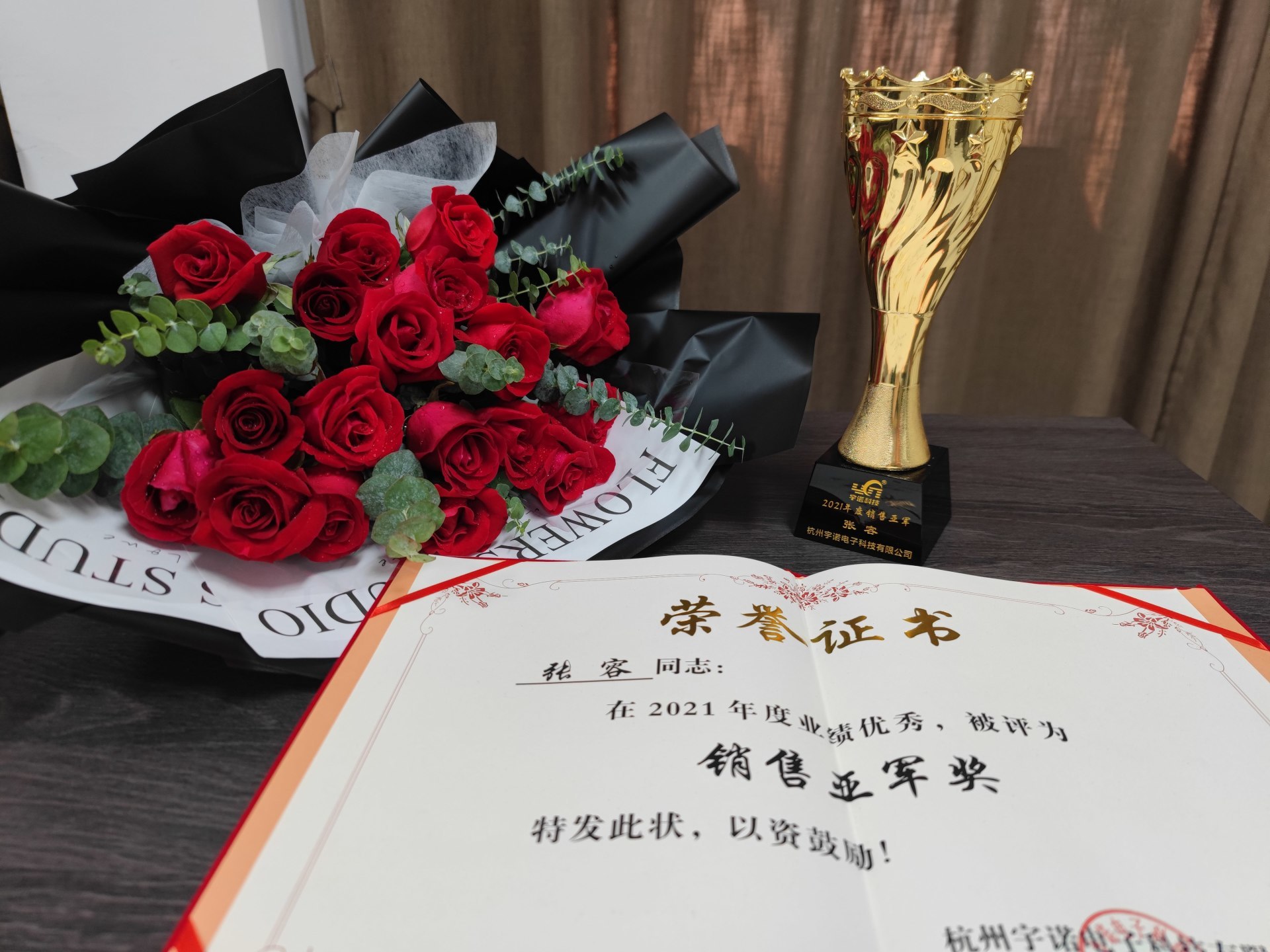 韓德昆董事長、銷售亞軍張容、市場部總監徐濤合影