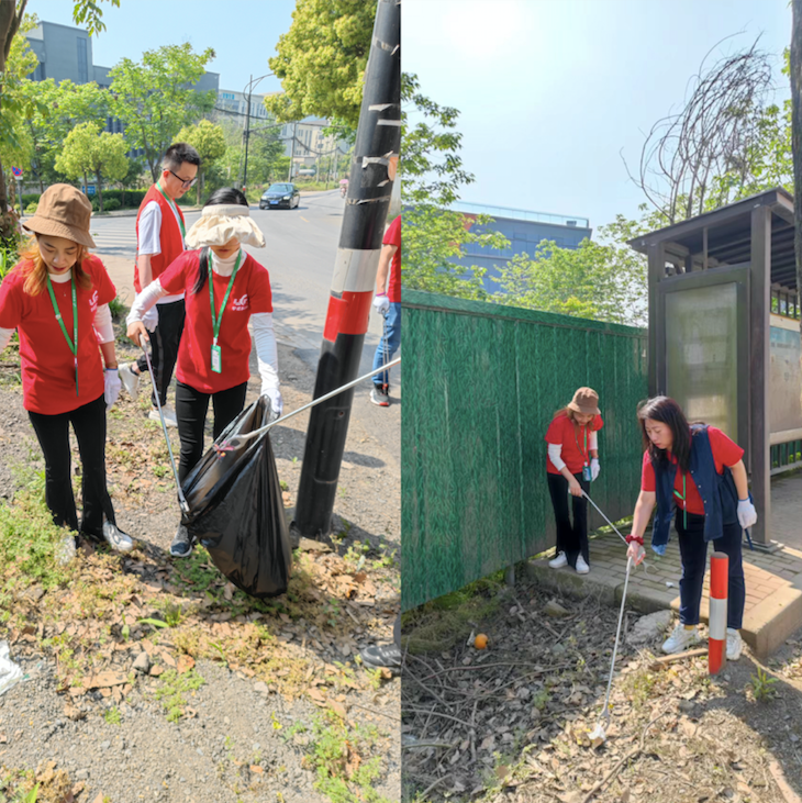 在對園區進行全方位清掃后,黨支部成員們帶上清潔工具,走出園區,對周邊的環境進行清潔。